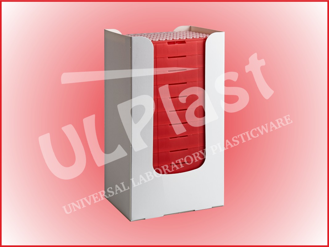 Refill rack – stos 10 głębokich tacek z 96 końcówkami każda, stosowany jako wkład uzupełniający do pudełka rack.